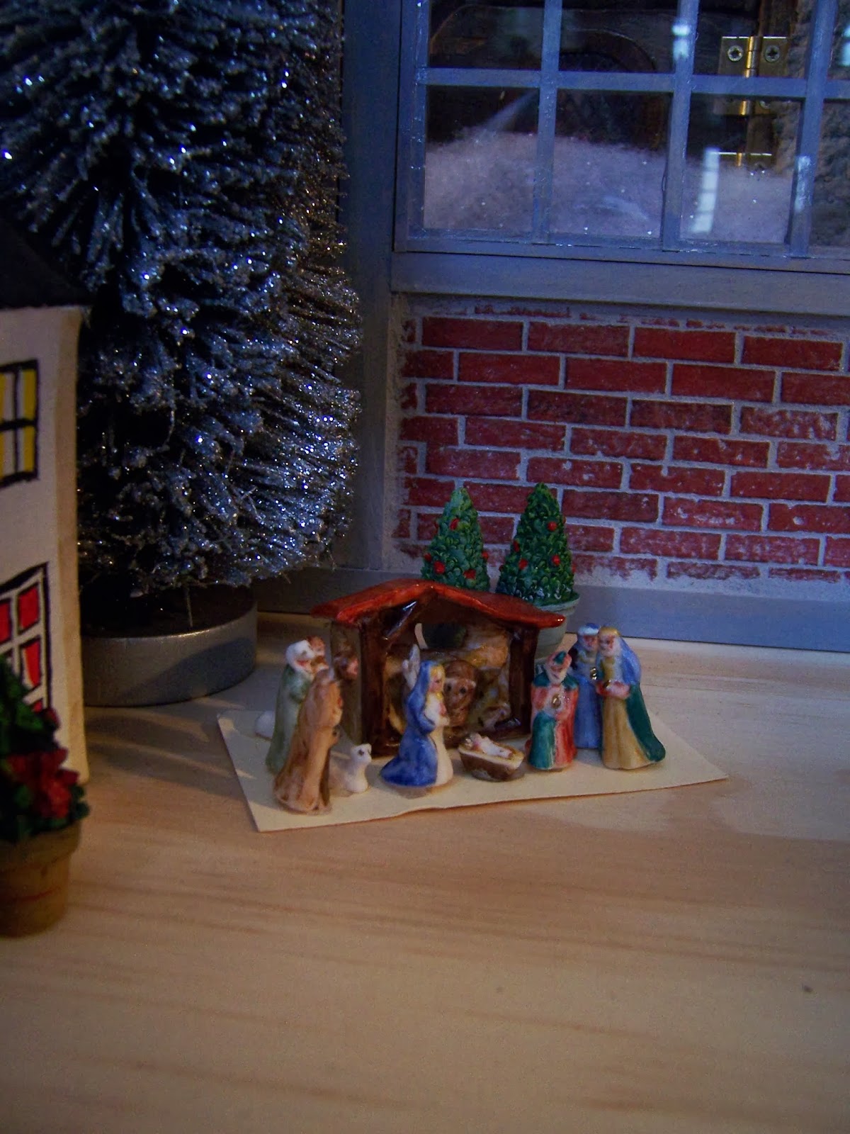 I finished this Year's Christmas Card two days after Christmas, Dear Readers, which is Not how I would like to have it happen! But so it goes when there is a busy life and I set myself a difficult task. This year it was a drawing of my Memory of Christmas Morning fifty-four years ago.... when I first set eyes upon The Lovely Old Dollhouse... and the "Never Ending Story" began! I won't go into detail about the struggles I had with drawing this Perspective! I just knew the "Vision" in my Memory..... and had to make it work on paper! There are no photographs of this.... so I am sure there are a few details that might be different if there were. I was only four years old and my sister was three and the dollhouse was built by my Grandpa from designs drawn up by my Daddy.