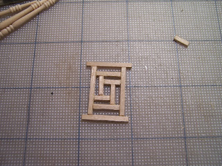 Even though there are still unfinished parts of the painted murals in the Chinoiserie Bedroom, Dear Readers, I could not find the right mood to continue the painting this past weekend. Rather than ruin what had already been accomplished by painting when not in the mood, I did what I often do when Indecision strikes... I worked on something else entirely unrelated (or so I thought) to this Project! I have been planning to make the bed for the Folly Bedroom simply by adding a mattress to the platform under the Gable at the front of the room. And I have known FOREVER the exact fabric I would use to make this mattress..... because I knew the first moment I saw the scrap ... oh years and Years ago.... that it was Perfect for dollhouse mattress ticking!! Here you can see my scrap... a lovely striped cotton seersucker fabric! It is not large... enough for two or maybe three dollhouse mattresses if carefully pieced....